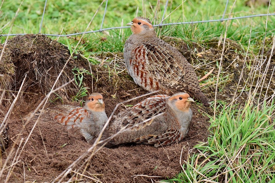 In een greppeltjes langs de weg kwam ik 8 patrijzen tegen, waarvan deze 3 een zandbad namenom ongedierte uit hun verenpak te verwijderen middels de schurende werking van het zand.