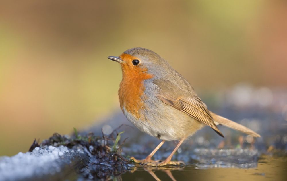 Er lag een dun laagje ijs op de vijver voor mijn vogelhut net sterk genoeg om de roodborst te dragen.