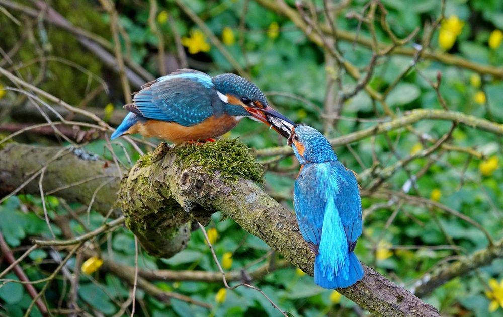 Bij het begin van het broedproces van ijsvogels krijgt het vrouwtje een visje aangeboden van het ijsvogelmannetje, de volgende fase is dan de paring.
