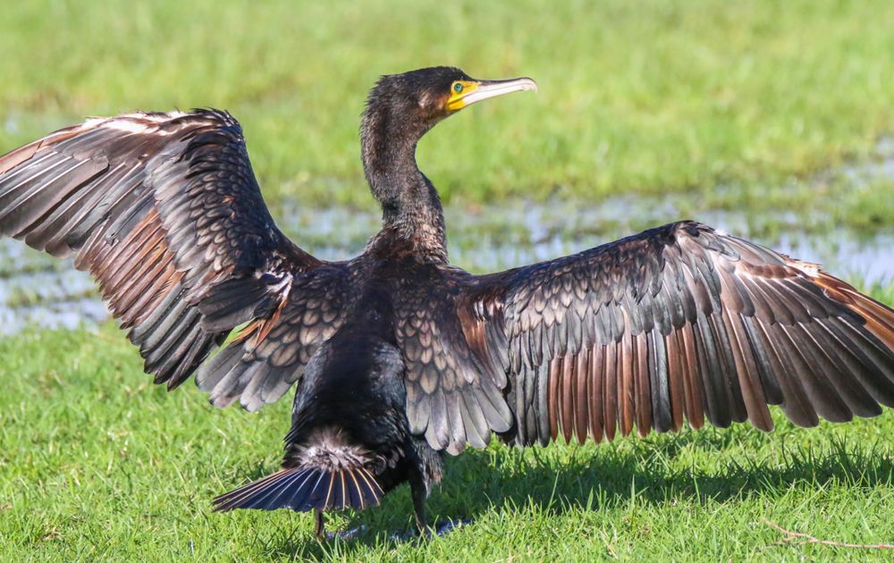 Aalscholver laat zijn mooie verenkleed zien.