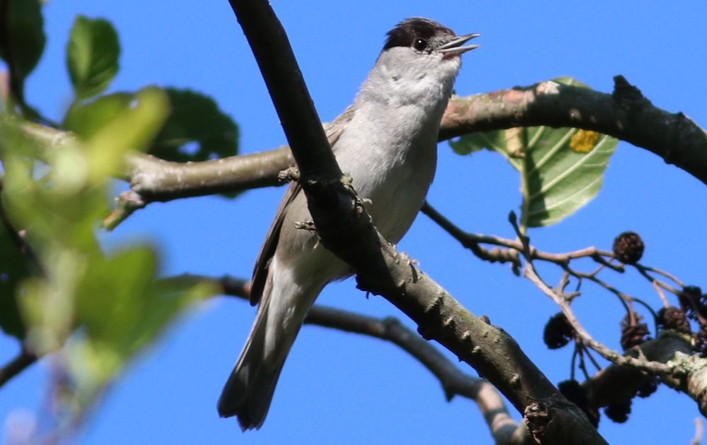 Vrolijk fluitend en genietend van alle andere vogels op 1,5 meter