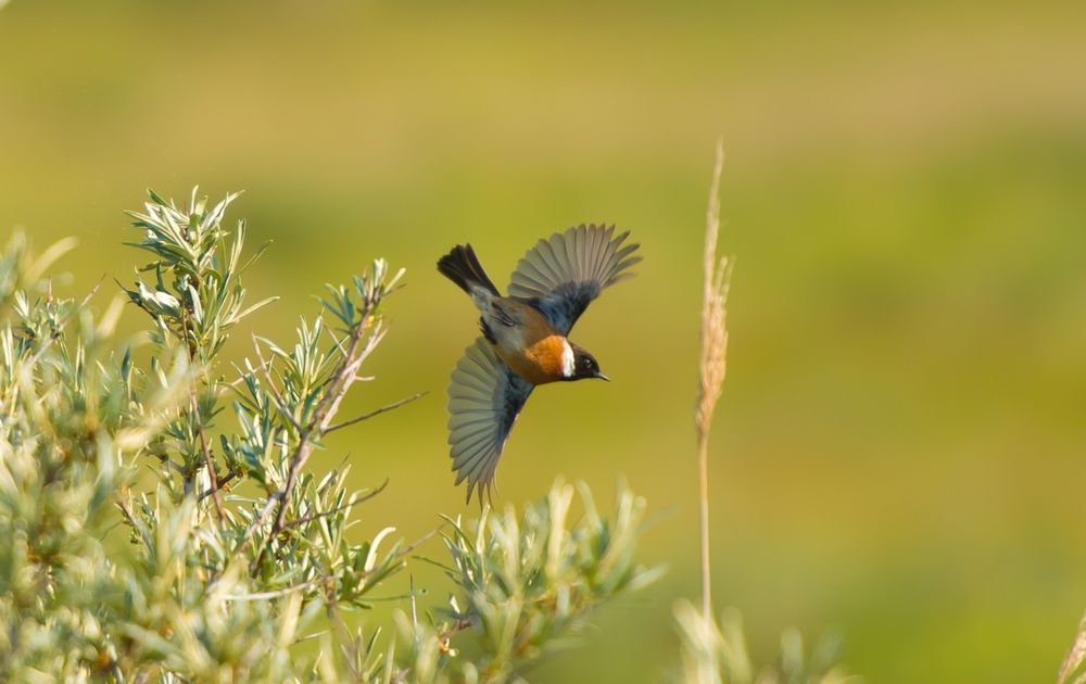 Roodborsttapuit vliegt op