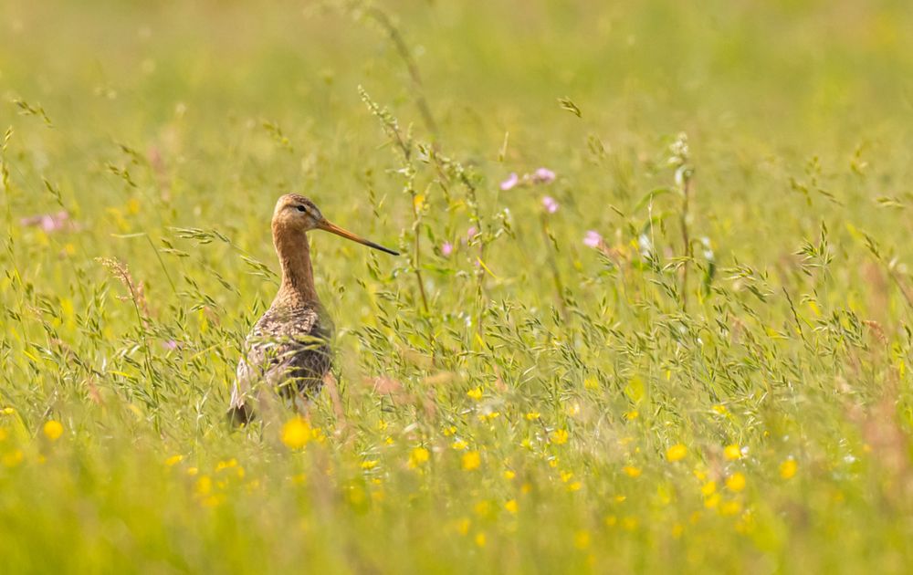 Grutto in het bloemenveld