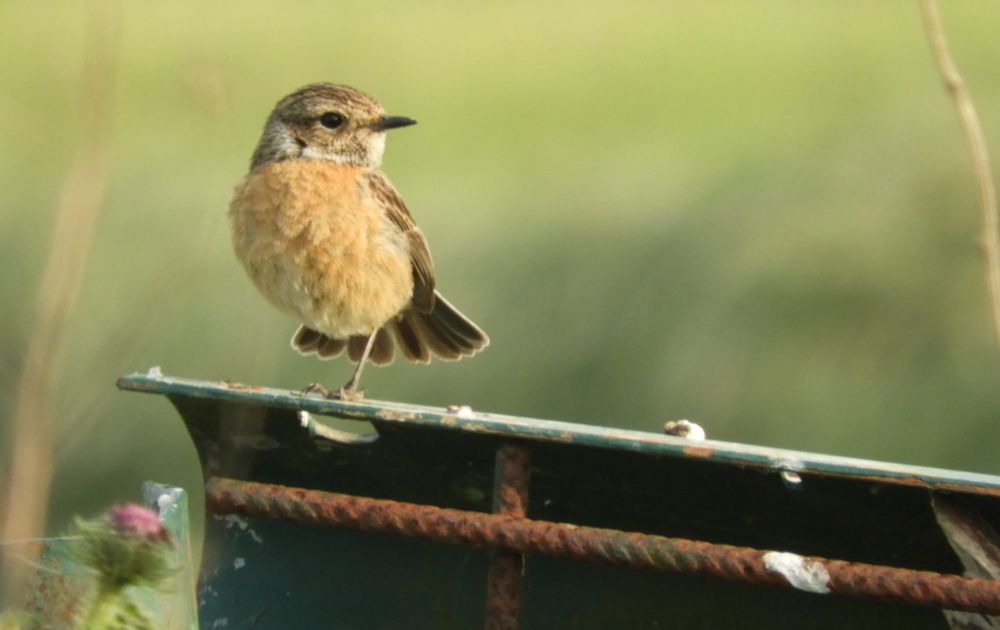 Op een mooie lente avond ging ik een stukje fietsen. Vanuit mijn ooghoek zag ik een vogeltje op een hek zitten. Ik kende het vogeltje niet. Toen ik even stopte vloog ze weg. De volgende avond ben ik met mijn fototoestel teruggegaan in de hoop haar weer te treffen. En ja hoor, daar was ze weer. Geduldig wachtend tot ik haar kon vereeuwigen. Aan de overkant van het weggetje, in het topje van een wilgenboompje, ontdekte ik ook haar man. Zo had ik twee vogels in één klap gefotografeerd. Een roodborsttapuit paartje ontdekte ik via google.