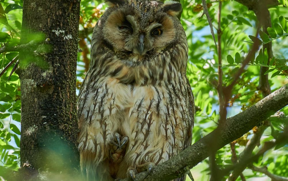 Met een knipoog laat de uil even zien hoe scherp haar klauwen zijn.