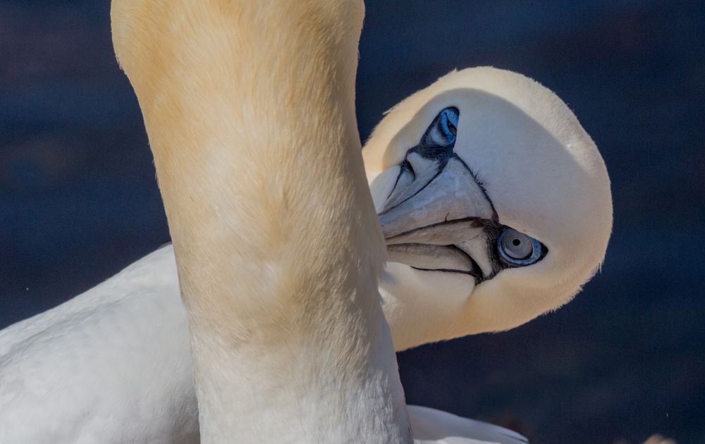 Jan van Genten paatjes gaan heel mooi met elkaar om. Naast het bekende ritueel van de snavels omhoog tegen elkaar aan helpen ze elkaar ook om de nekken te vlooien. Dat zijn de plekken waar de dieren zelf niet bij kunnen door de lengte van hun snavel.