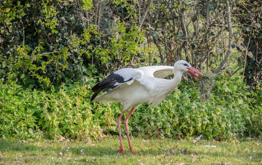 Ooievaar druk in de weer met het verzamelen van nestmateriaal
