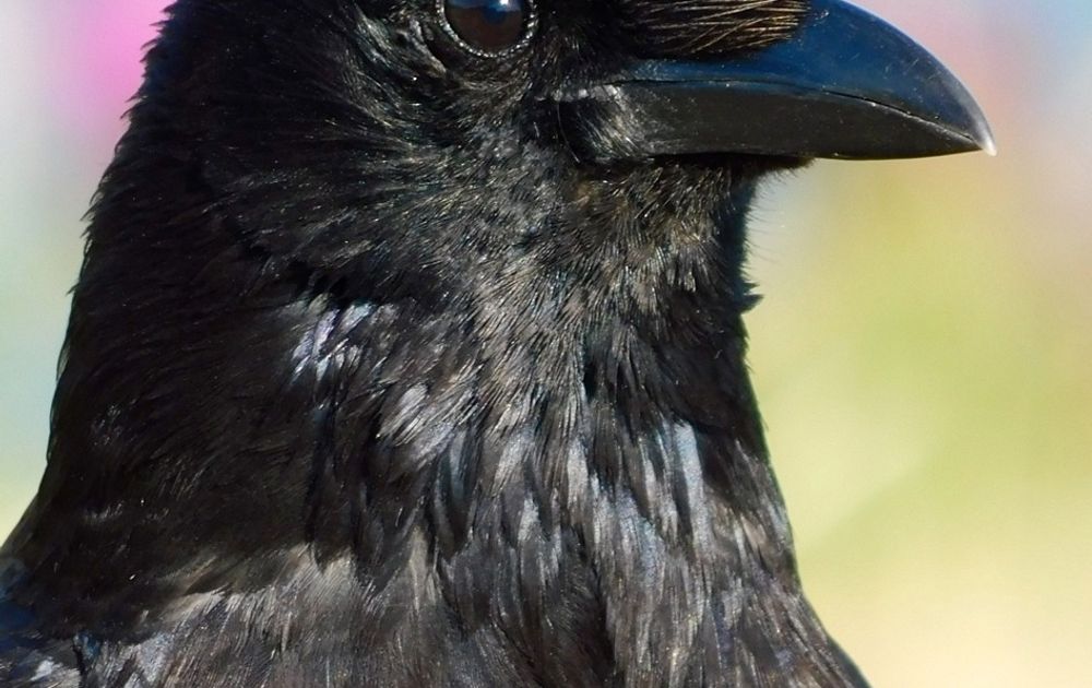 Voor de fraaie, kleurrijke achtergrondtinten zorgen deels de diverse wilde planten langs de rivieroever: Een portret van onze mooie kraaiendame in de rui.