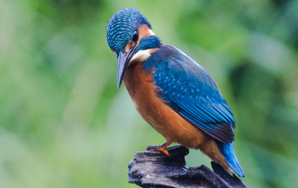 Een alerte ijsvogel op een tak, klaar om te gaan vissen.