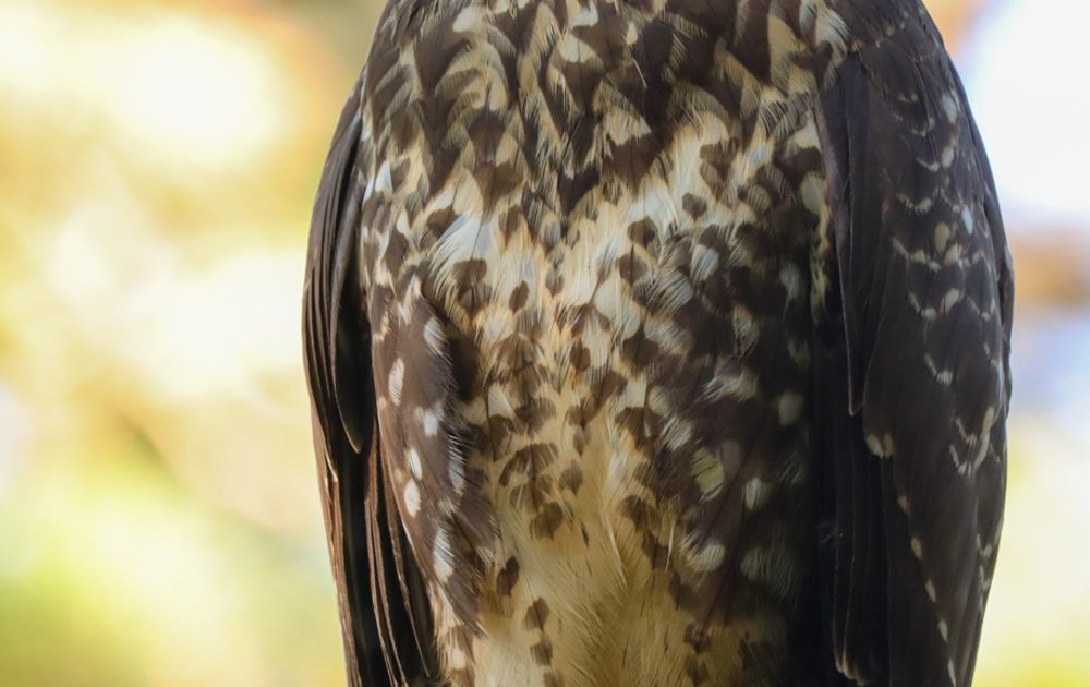 Jonge buizerd heeft honger. Een tweede jong heeft zojuist een prooi van de ouders ontvangen en nu is deze het wachten zat.