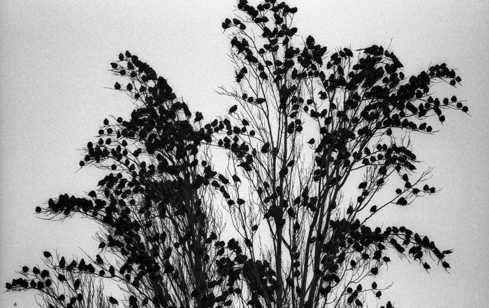 Lawaai makende spreeuwen verzamelen zich