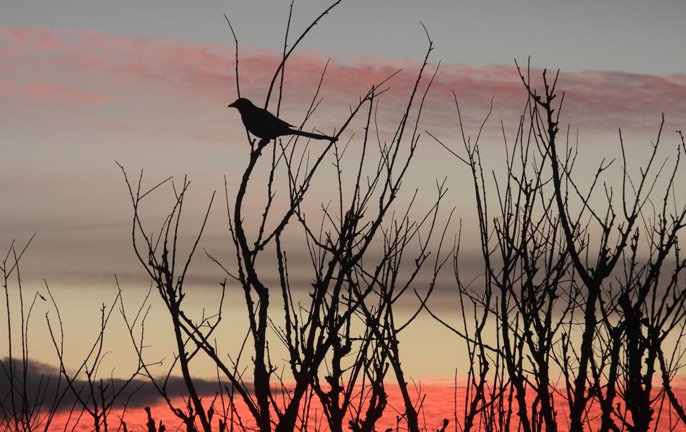Goed beschouwd zijn eksters toch prachtige vogels, ook al zie je alleen maar het silhouet en niet het karakteristieke zwart/wit.