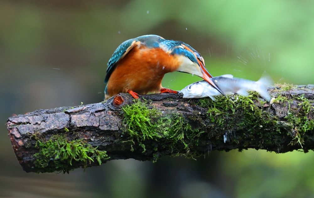 Deze mooie vrouwelijke ijsvogel probeert het gevangen visje eerst met een paar klappen stil te krijgen alvorens op te eten.