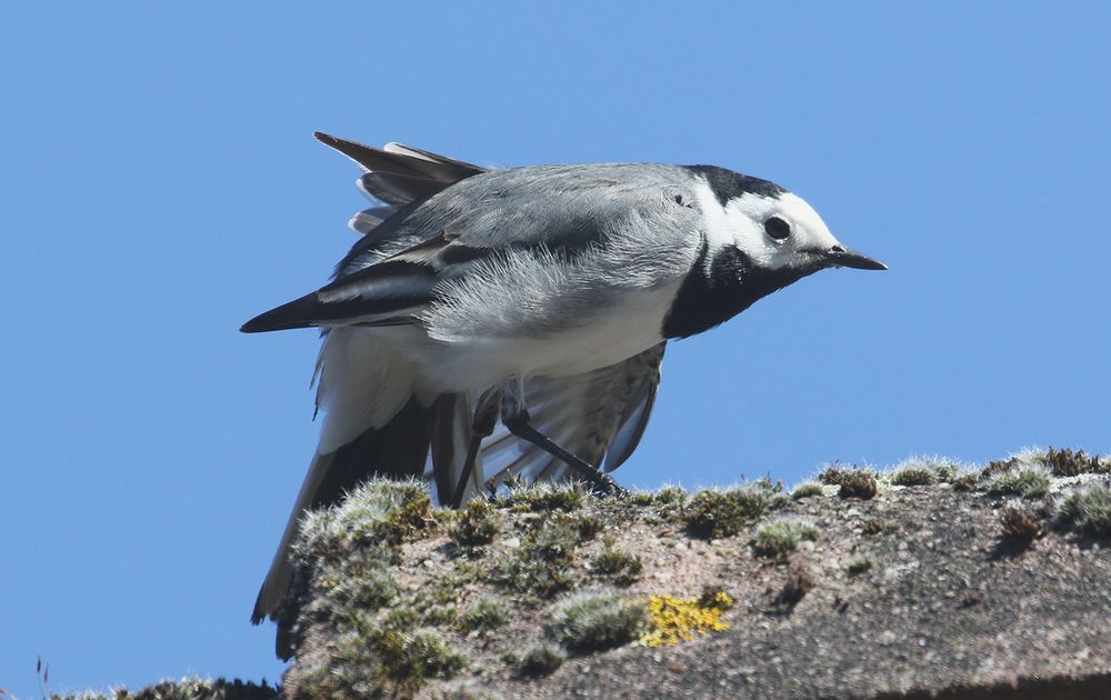 De witte kwikstaart zit regelmatig op de nok van ons dak. Even rekken en strekken voor de volgende tocht op zoek naar voedsel.
