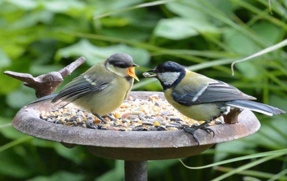Kind koolmees schreeuwt naar naar moeder koolmees dat hij gevoerd wil worden...