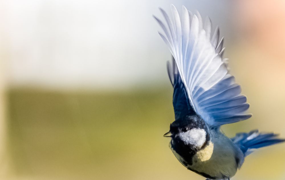 in onze achtertuin is het een komen en gaan van koolmeesjes en pimpelmeesjes, die zich tegoed aan de vogelpindakaas en zaden. deze koolmees gaat er weer even vandoor.