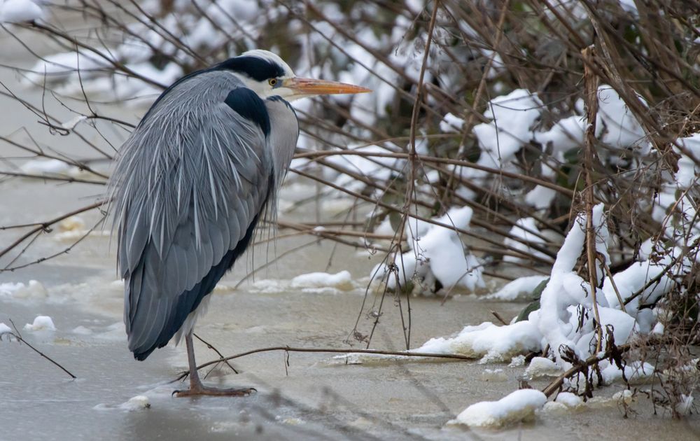 Meerdere Blauwe Reigers gezien, maar deze stond er zo mooi bij. Met opgetrokken schouders in de kou, net als ik zodra ik weer even stond af te wachten.