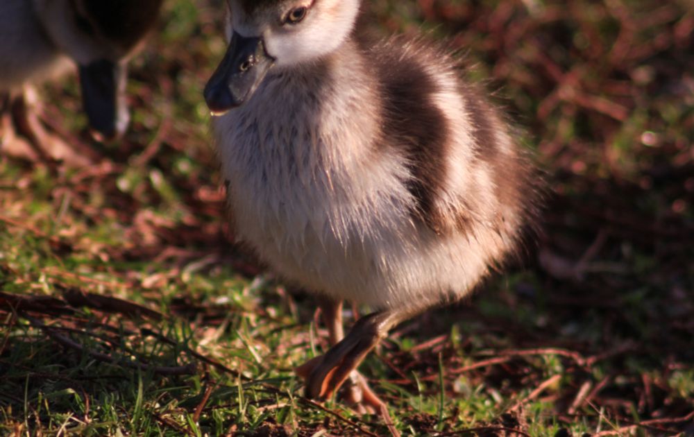 Nog net voor de grote sneeuwval zijn de eieren van de nijlgans uitgekomen.