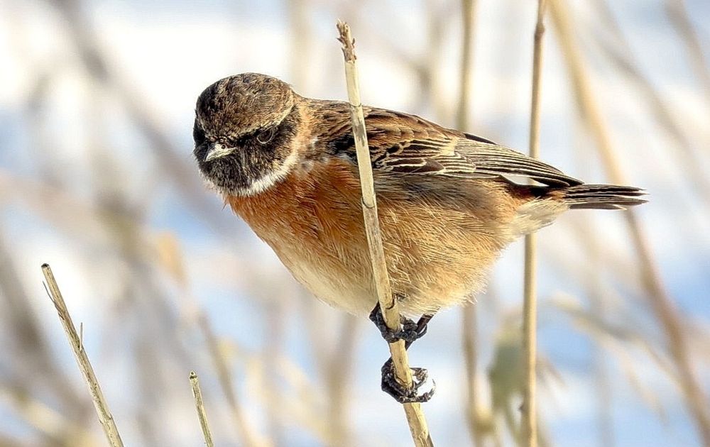 Ik (Quin, 13 jaar) fotografeerde deze mooie roodborsttapuit paar dagen geleden. Hij zat al wat rond te scharrelen op de grond, maar toen ging 'ie voor een paar tellen heel mooi poseren op een rietstengel