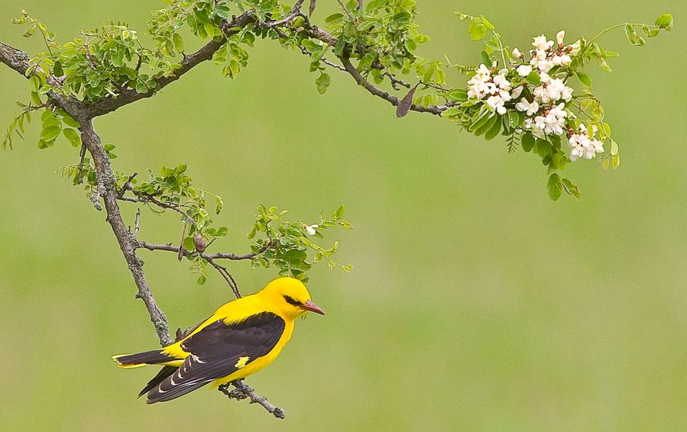 Plotseling kwamen er drie wielewalen (1 mannetje, 2 vrouwtjes) voorbij en gingen een tel op een tak van de acacia zitten. Daarna waren zij weer verdwenen