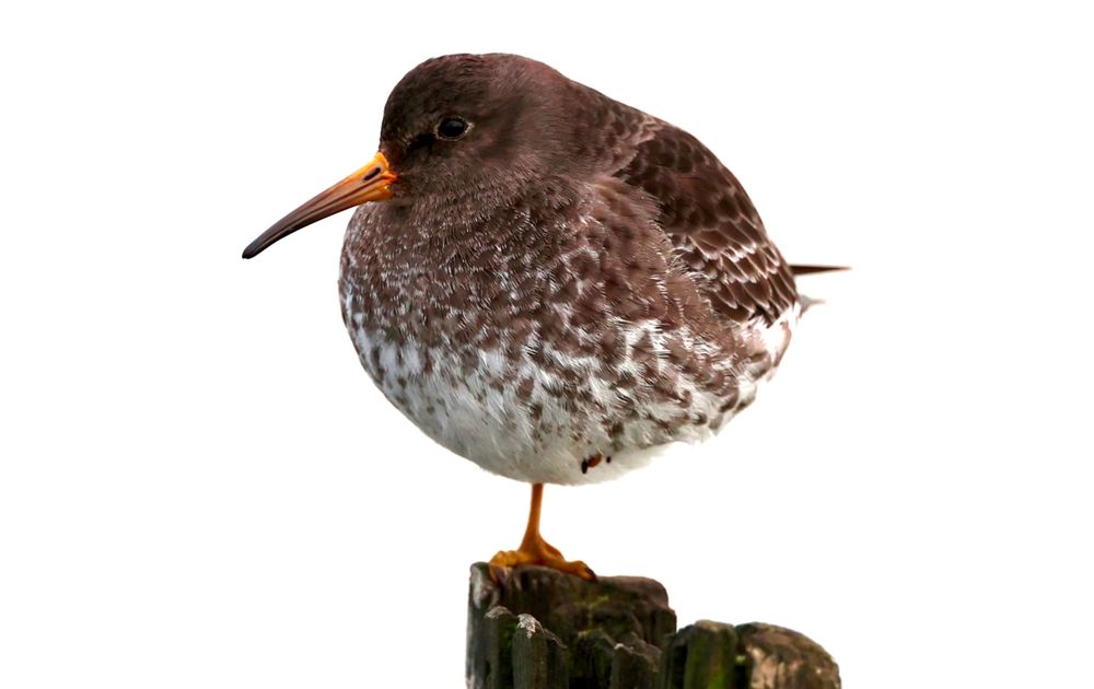 Op Texel in het haventje van De Cocksdorp in de Waddenzee tref ik in de winter regelmatig Paarse Strandlopers. Dit mooie exemplaar was rustend en balancerend op één poot. Het was een koude maar mooie dag en dat zie je ook wel terug in de foto.