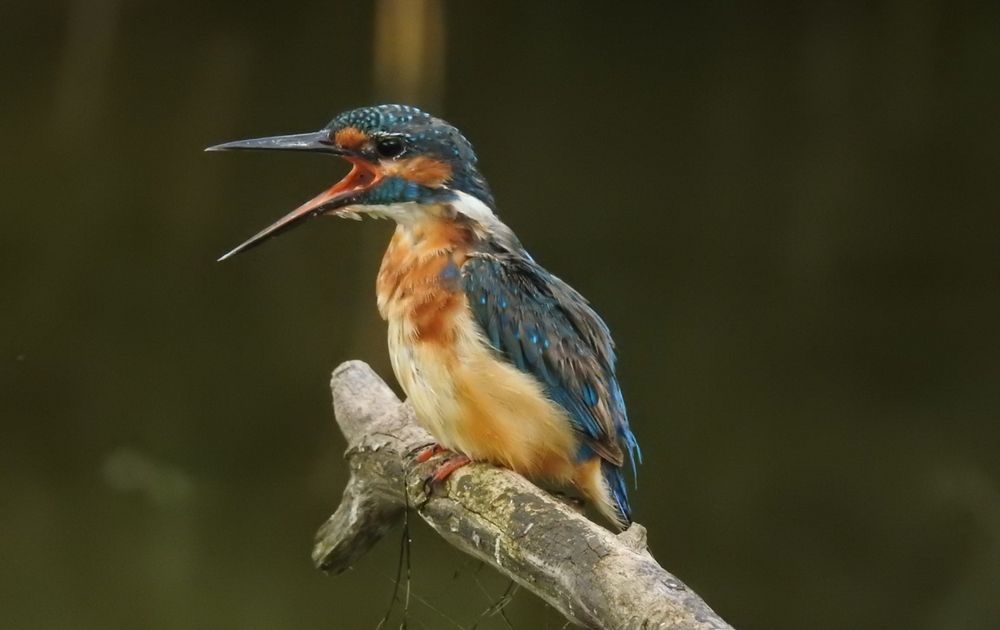 een mooie ijsvogel die aan't gapen is...