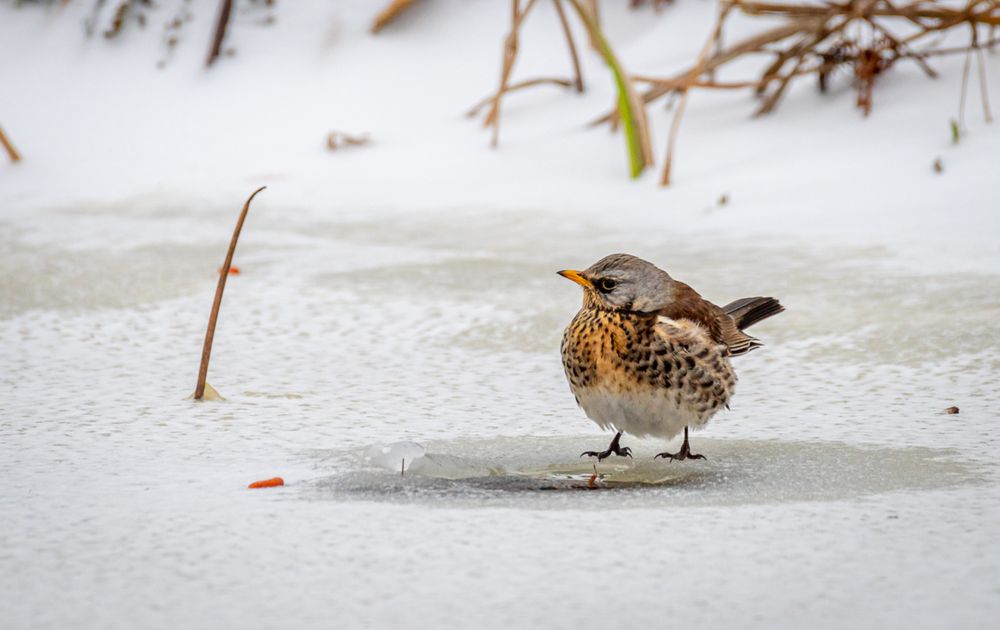 Tijdens de strenge vorst in februari kwam een groepje van 6 kramsvogels in onze tuin om te drinken uit de vijver
