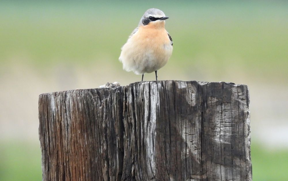 Plots zag ik hem vliegen, de prachtige tapuit; een mannetje. Hij landde op de grond en vervolgens zocht hij een paal op. Ik maakte dit kleurrijke portret van deze bedrijvige vogel. Mijn derde tapuit, dit voorjaar, zat even niet voor paal, maar erop!
