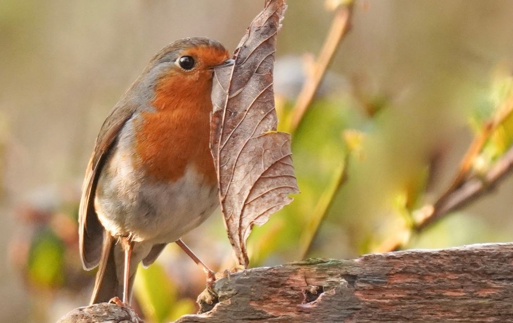 Deze roodborst is druk met de inrichting van de “babykamer”.
