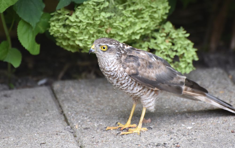De sperwer kwam in een duikvlucht op een mus af.