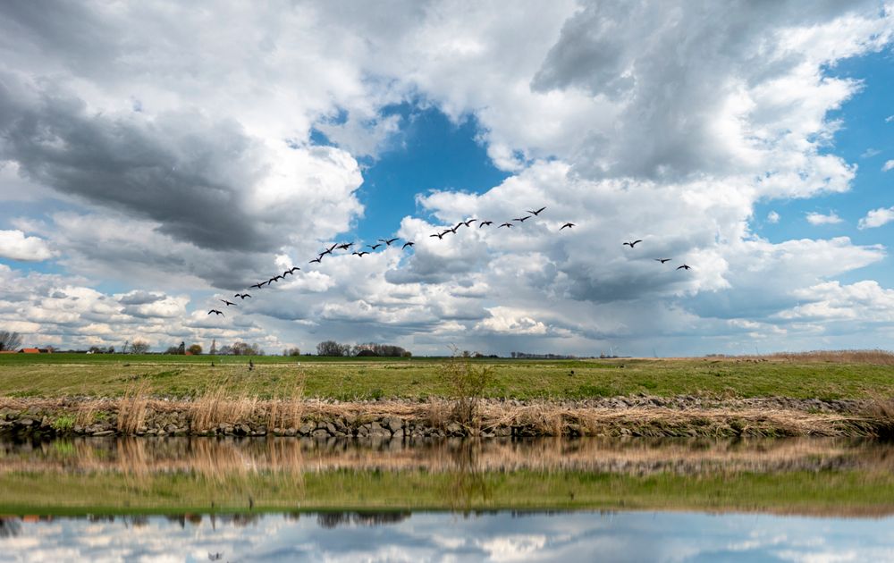 Vlucht ganzen bij het haventje van Nieuwendijk vanaf de pont naar Tiengemeten