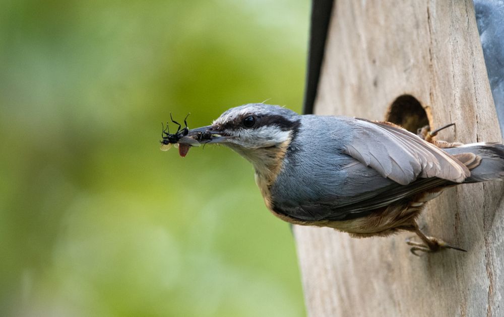 deze boomklever was erg druk met het aanvoeren van lekkere hapjes voor zijn jonkies in het nestkastje, insecten, spinnetejs, alles voor het kind!