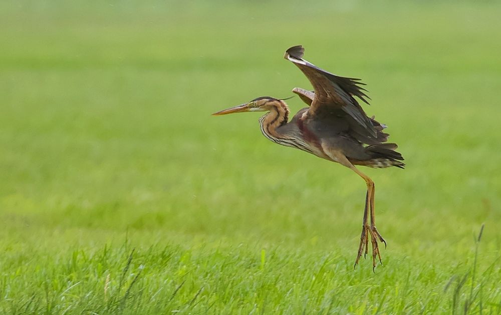 Vanmiddag een rondje door de polder gedaan. Op een gegeven moment zag ik deze Purperreiger over het weiland aan komen vliegen en ben langs de kant van de weg gaan staan. Hij landde precies in het weiland waar ik met de auto naast stond, om vervolgens langs de slootkant te gaan foerageren.