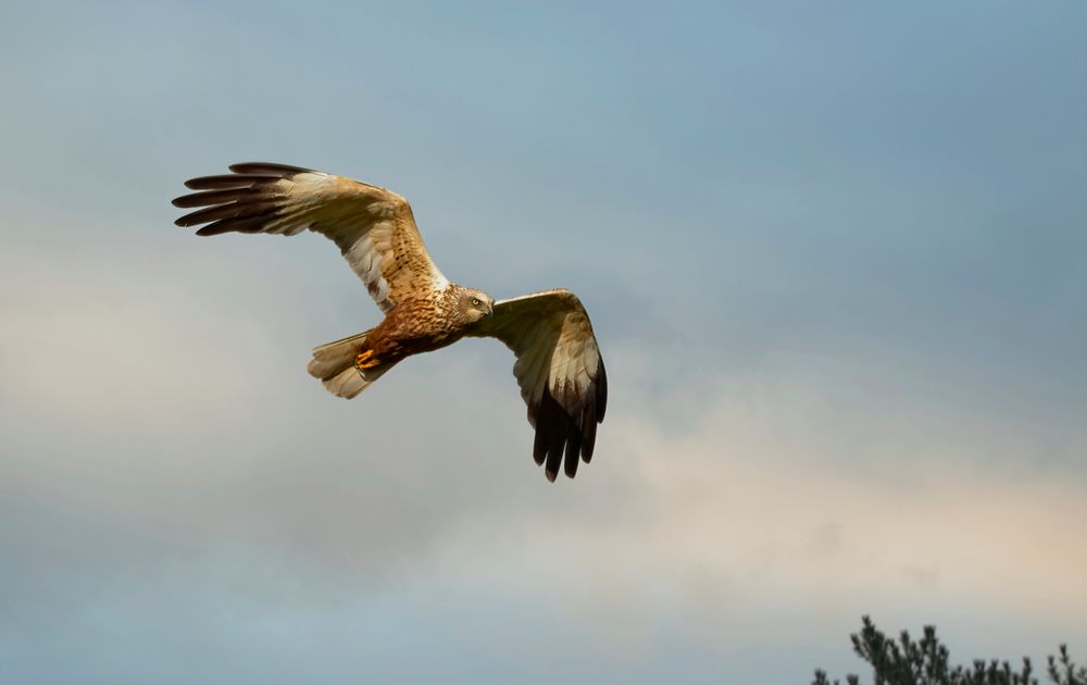 Deze kiekendief kiekt altijd over het land rond de zelfde tijden, prachtige vogel