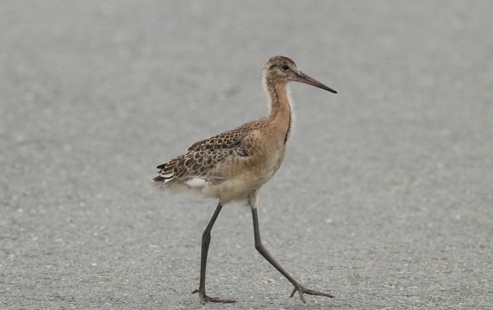 'Het is weliswaar een fietspad, maar je kunt er ook wandelen', dacht deze jonge grutto. Eén van de ouders sloeg alarm, staande op een nabij gelegen paaltje.