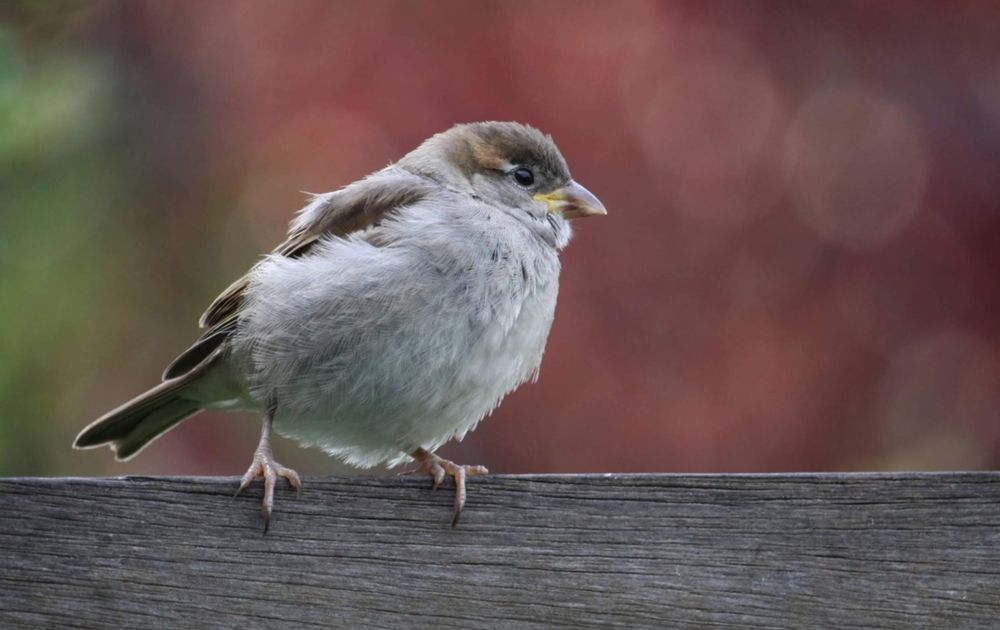 Baby mus zit lekker om zich hern te kijken en wacht op lekkere hapjes