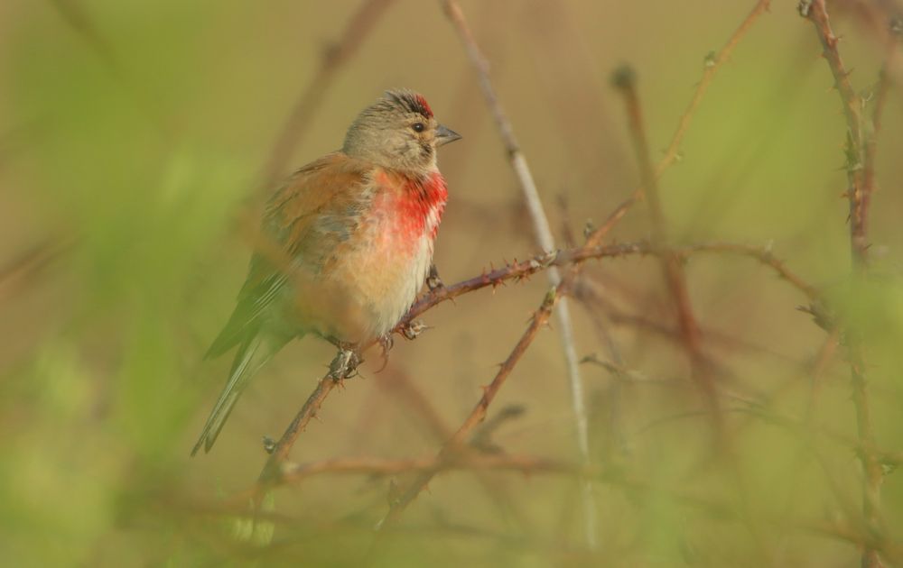 Een moment om van te genieten als je een veerpoetsende kneu ziet.