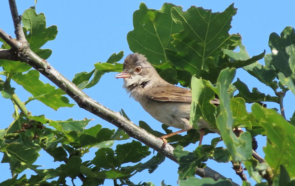 We liepen naar de uitzichtheuvel en werden - bijna boven aangekomen - gadegeslagen door deze grasmus.
