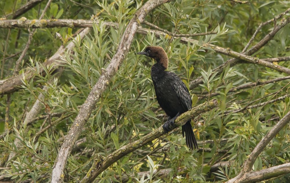 Deze dwergaalscholver houdt zich al enige tijd op in Utrecht Hoograven Plas. Bijna dagelijks patroon is: in de vroege ochtend wakker worden en tevoorschijn komen uit het wilgenhout op het eilandje in de plas en beginnen met "opmaken". Daarna vliegt hij/zij naar Nieuwegein - Polder de Wiers / Klein Vuylcop om te foerageren. En dan aan het eind van de middag weer terug naar Utrecht Hoograven Plas. Je kunt er bijna de klok op gelijk zetten. De dwergaalscholver wordt heel af en toe in Nederland waargenomen.