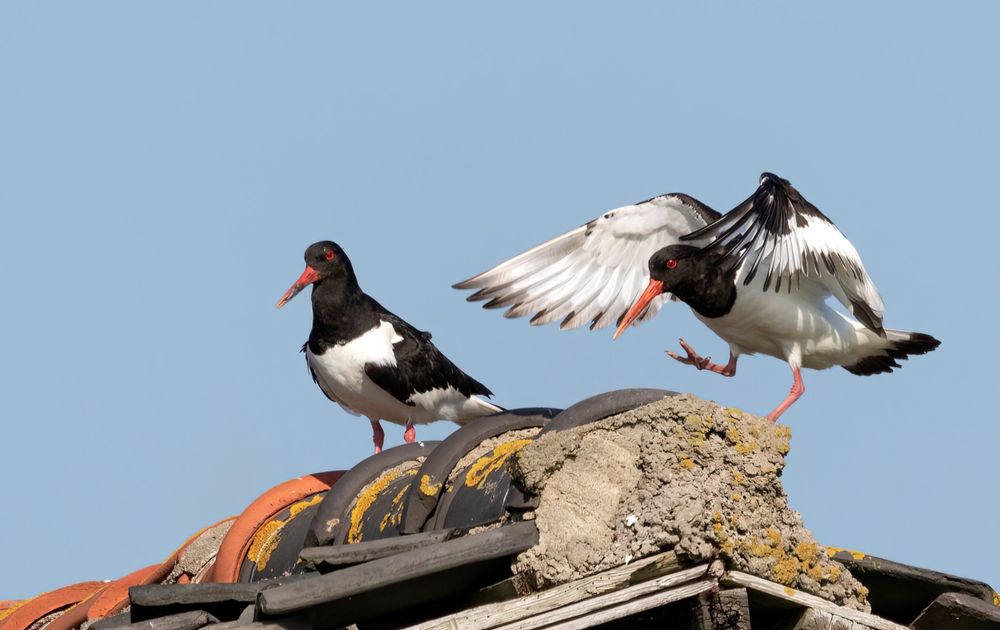 Dit stel zat altijd op het dak bij mij en van mijn buurman verderop. Om het gevaar weg