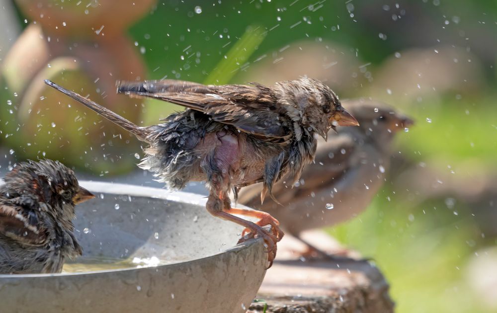 Altijd genieten van de vele mussen in de tuin, deze ziet er misschien niet al te gezond uit maar gedraagt zich als de sterkste in de groep, té leuk!